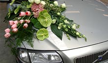 украшения в одном стиле на весь свадебный кортеж.